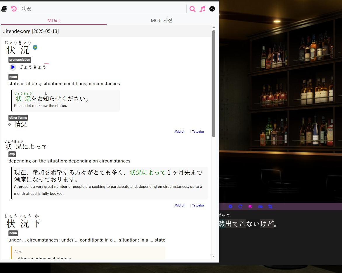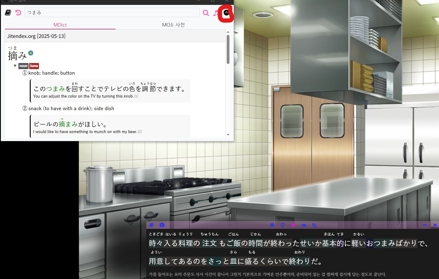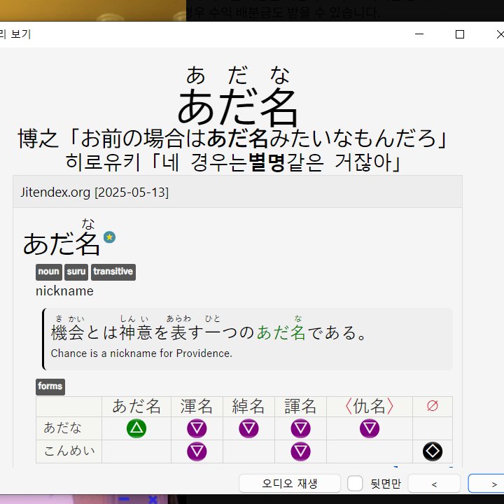 세팅 완료 기준으로... 안키 PC앱을 동시 실행한 상태로, 모르는 단어를 클릭해 사전을 띄웠을 때, 저 A 버튼을 누르면...