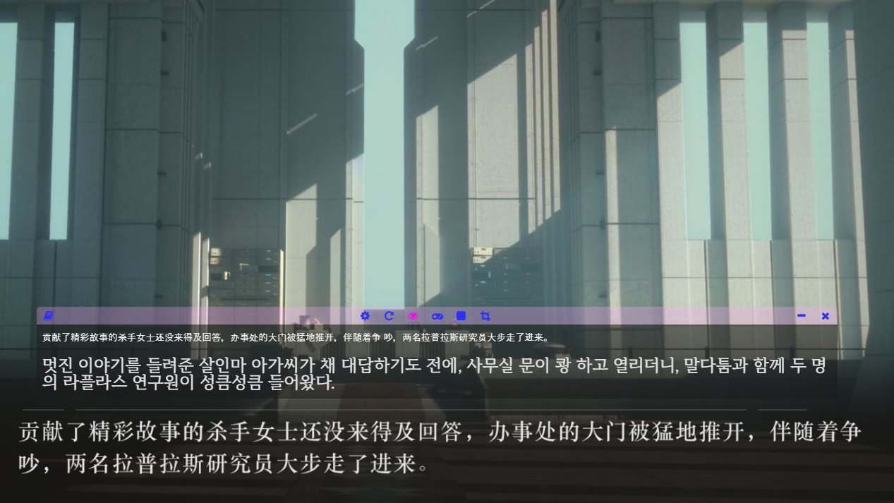 루나 번역기는 말하자면 화면에서 텍스트를 긁어오거나 (OCR) 혹은 실행되는 게임 파일 내에서 현 출력중인 텍스트를 읽어오는(후킹) 기능의 프로그램입니다.